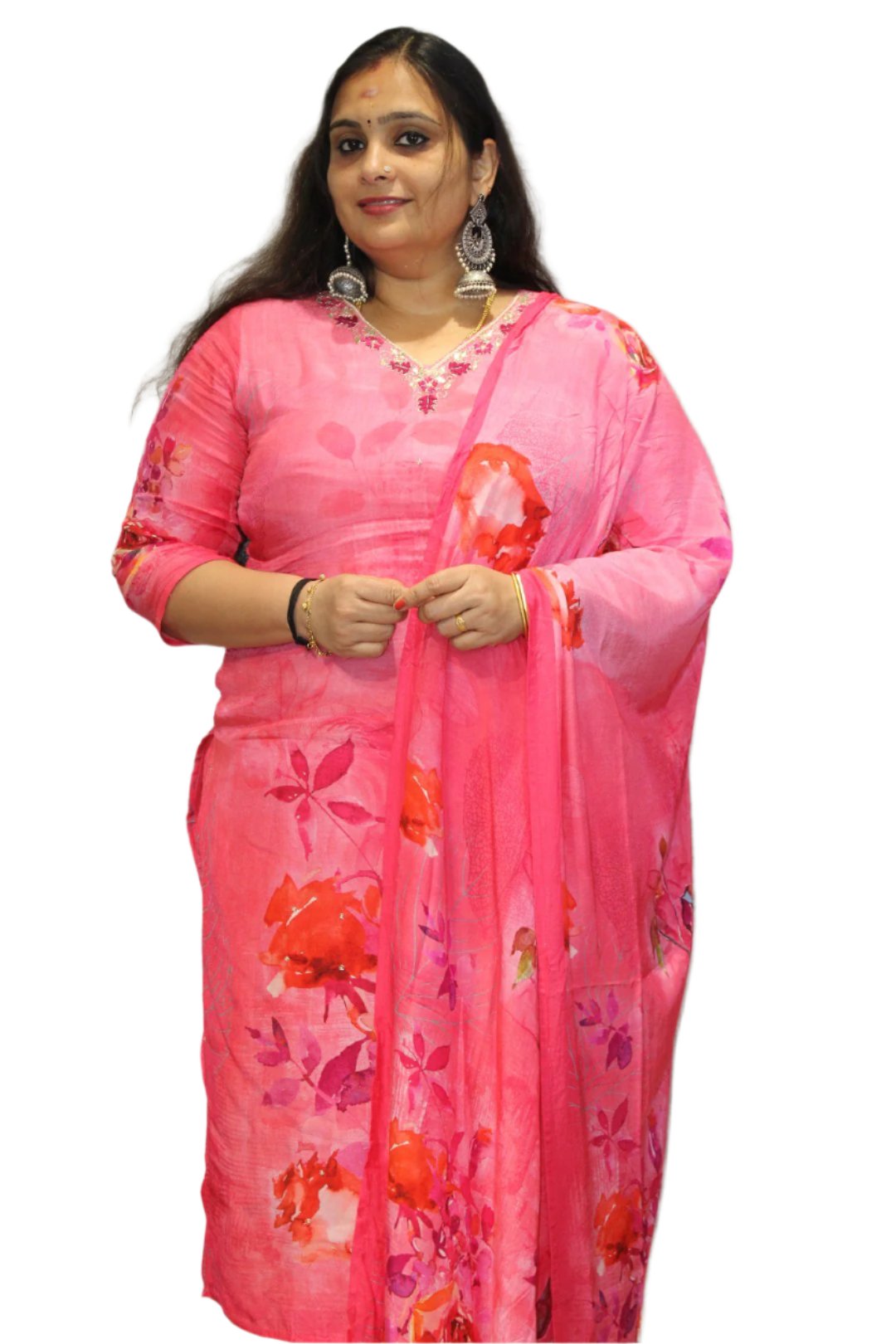 Upgrade your ethnic wardrobe with our Salwar Suits featuring intricate Beeds V neck work. This set comes with a Dhupatta and matching Bottom, providing a complete and elegant look for any occasion. Stand out with our high-quality materials and craftsmanship.