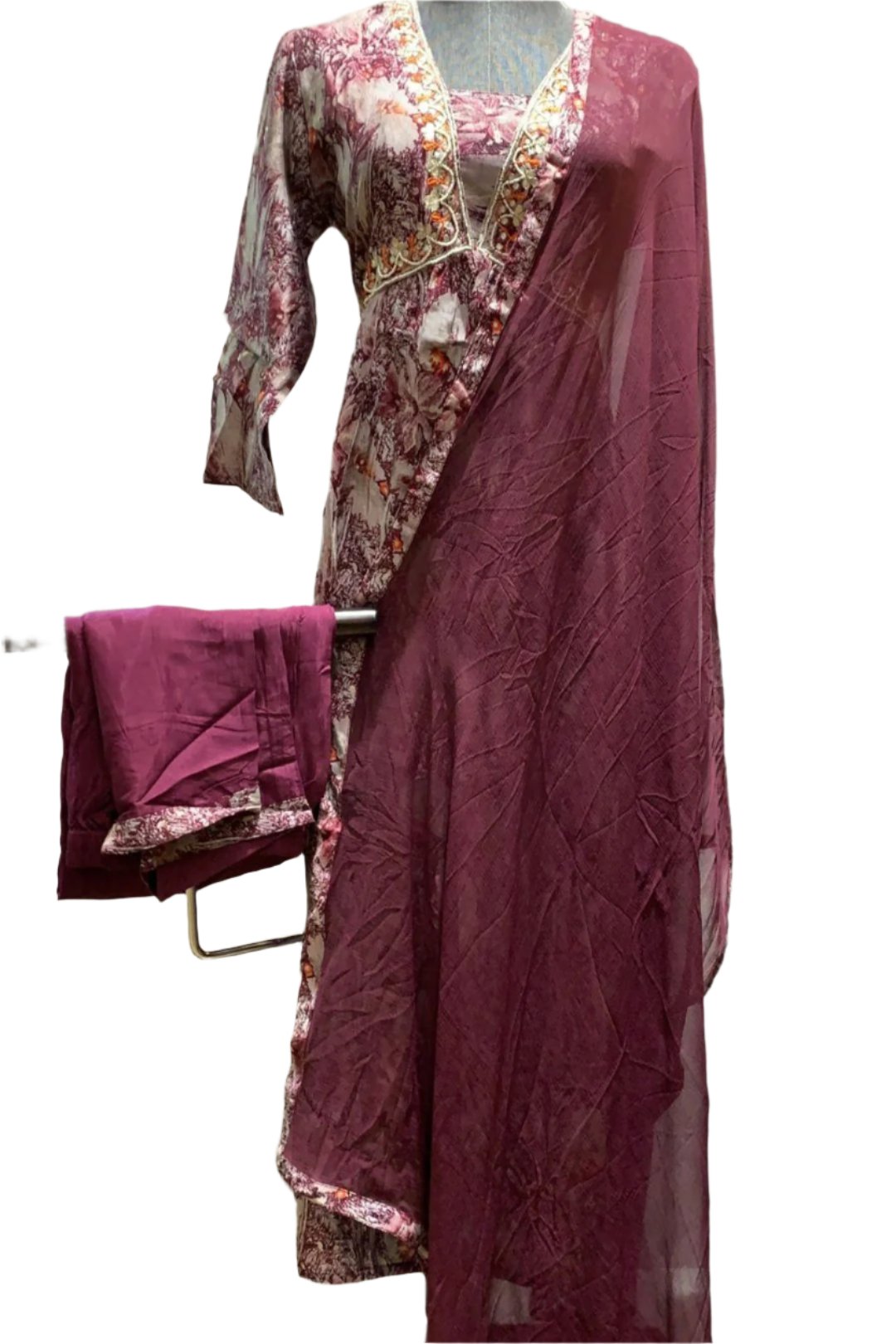Enhance your ethnic wardrobe with our Ready To Wear Slitted Salwar Set. Our set is designed to provide comfort and style, featuring a slitted salwar that allows for ease of movement. Made with high-quality materials, this set is perfect for any occasion. Upgrade your traditional look with our versatile and fashionable Salwar Set.
