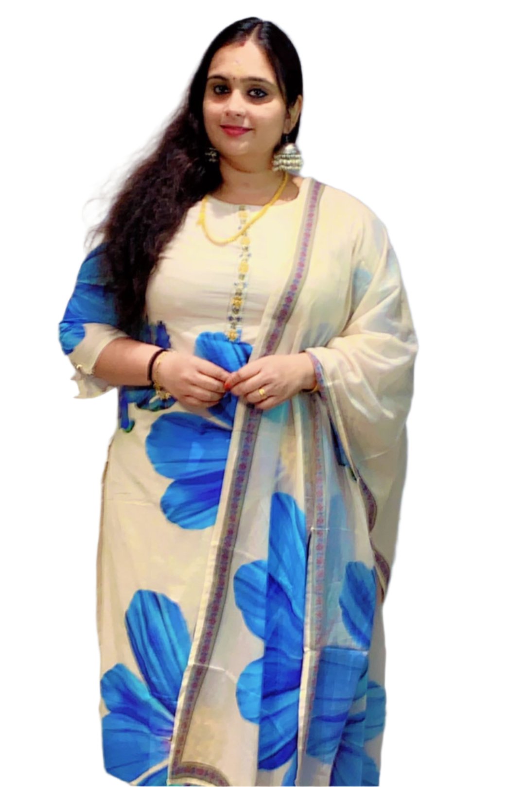 Our Salwar Suits with Dhupatta & Bottom feature a stunning digital print floral pattern, adding a touch of elegance and style to your wardrobe. The included dhupatta and bottom provide versatility and options for different looks, making it a must-have for any fashion-forward individual. Elevate your style with these beautifully designed salwar suits.