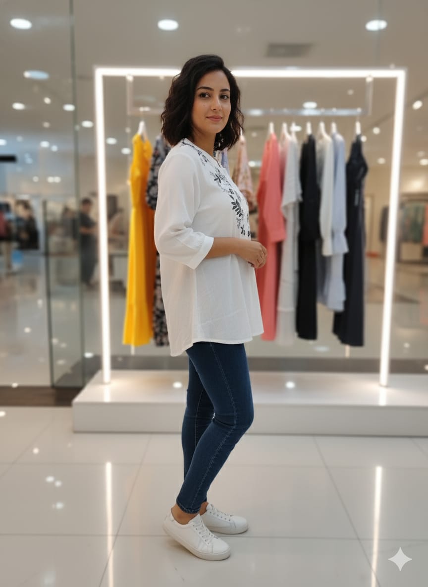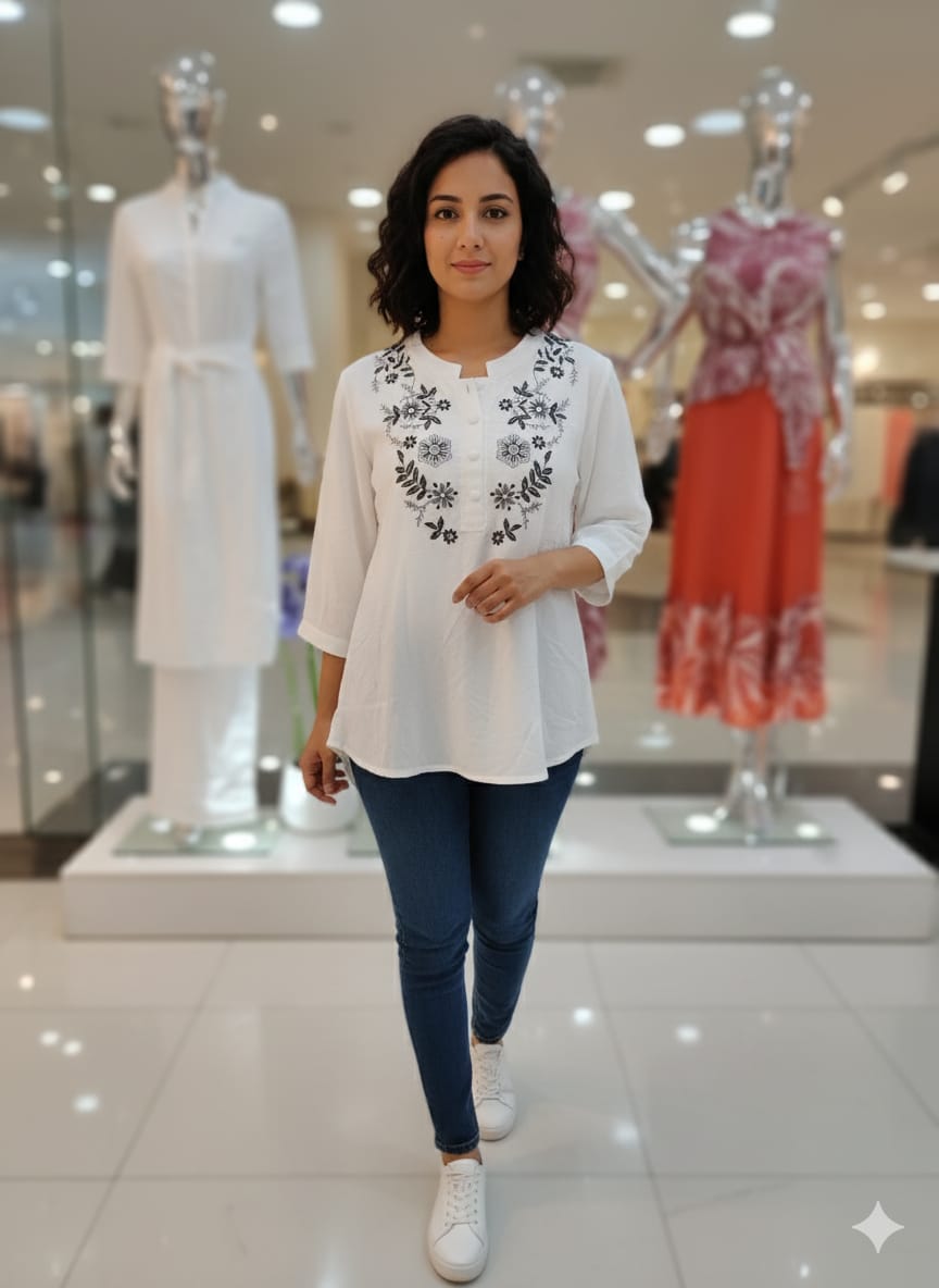 # Short Tops Elevate your everyday wardrobe with this crisp white printed short top, designed for modern women who value comfort and style. The lightweight fabric drapes beautifully while the thoughtful print adds visual interest to casual outfits. Perfect for layering or wearing solo, this versatile piece transitions seamlessly from day to evening. Pair it with your favorite bottoms for an effortlessly polished look that works year-round.