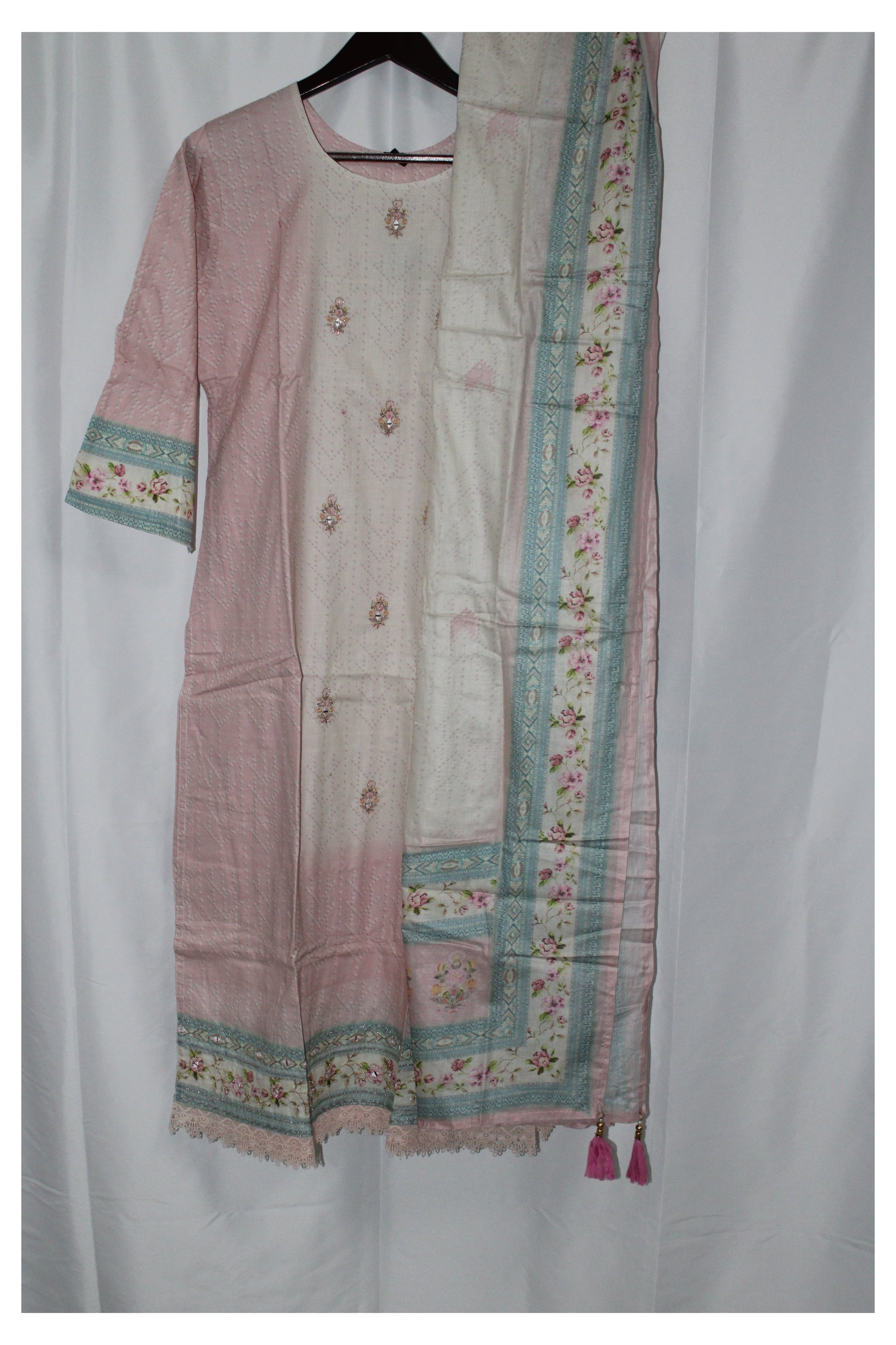 Introducing our versatile Women Salwar Suit made with soft and comfortable Cotton fabric. The set includes a V-neck top, matching bottom pant, and a dupatta for a complete traditional look. Perfect for all occasions, this outfit offers both style and comfort.