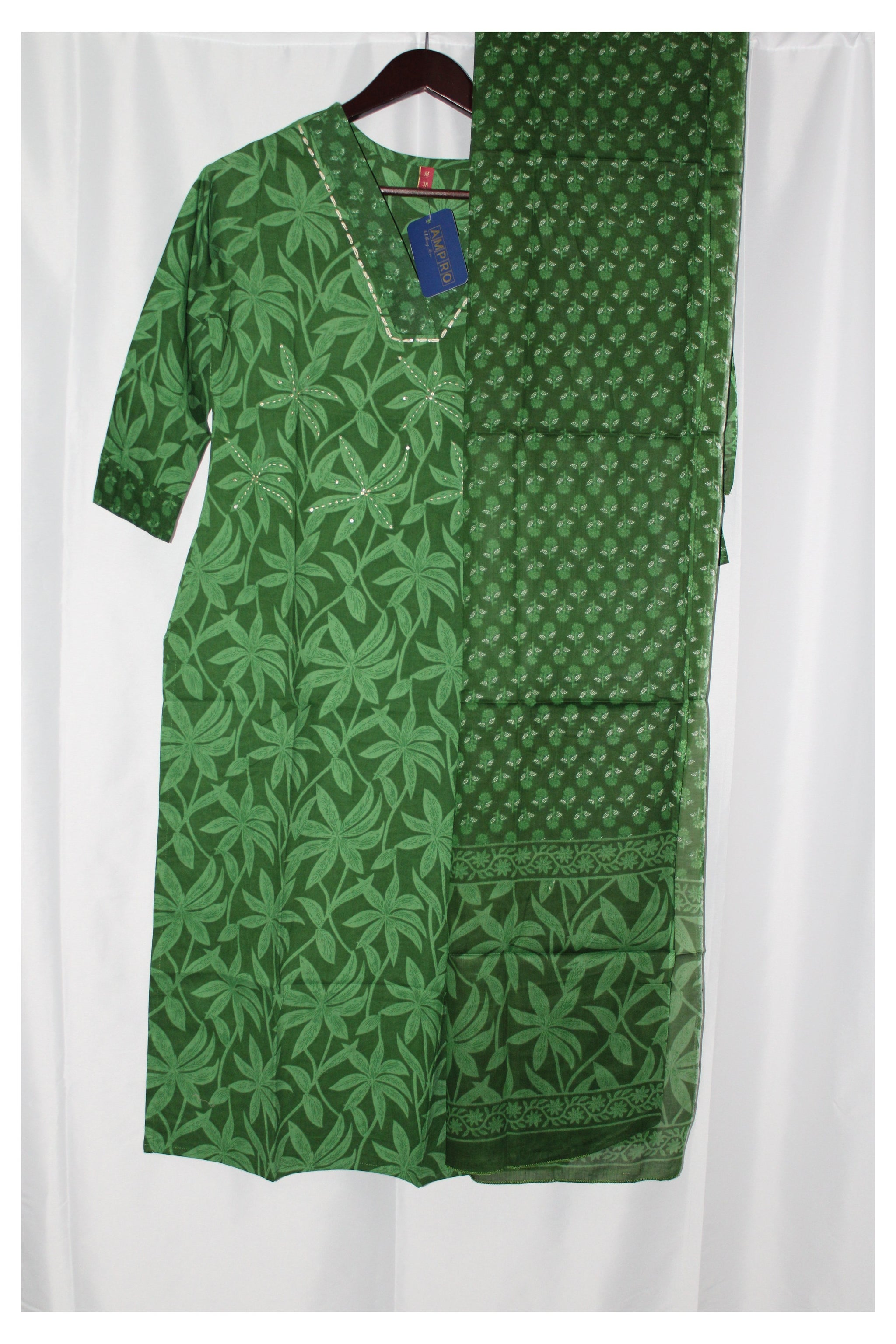 Women's Salwar Suit with Dupatta and Botton Pant Cotton V Neck.
